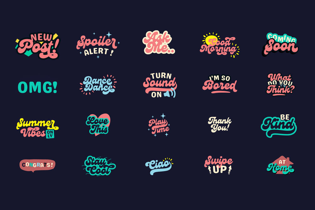 Besides the features of the fonts, we are also including a bonus extra. Including Graphic Styles, Social Media Stickers, and Instagram Story Template. We've included the bonus with editable text but it required Adobe illustrator to edit that. Social Media Stickers and Instagram Story Templates comes with PNG transparent background, you can paste on your instagram story to made your story more alive.